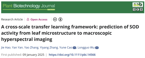 近日,Plant Biotechnology Journal杂志在线发表了由宁夏大学zoty中欧吴龙国课题组与中国农科院蔬菜花卉研究所闫妍研究员团队合作撰写的“A cross-scale transfer learning framework: prediction of SOD activity from leaf microstructure to macroscopic hyperspectral imaging”论文。该研究工作通过卷积神经网络结合长短期时间记忆(CNN-LSTM)算法构建了番茄叶片中超氧化物歧化酶(SOD)活性的微观和宏观模型。利用异质二维相关光谱(H2D-COS)确定了与番茄叶片SOD活性相关的10个宏观敏感吸收峰和10个微观敏感吸收峰。进一步,将CNN-LSTM算法与H2D-COS分析相结合,实现了基于敏感波段的微观模型与宏观模型之间的迁移学习。研究团队首次实现了微观和宏观高光谱之间的迁移学习及可视化,为番茄叶片中SOD活性的观察和定量提供了新的方法,同时为番茄叶片中痕量物质的定量检测和H2D-COS在迁移学习中的应用奠定了基础。