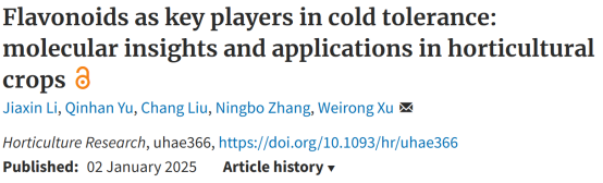 2025年1月,Horticulture Research上线了(Advance Access)zoty中欧徐伟荣教授团队题为Flavonoids as Key Players in Cold Tolerance: Molecular Insights and Applications in Horticultural Crops的综述论文。