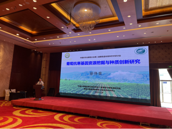 会上,徐伟荣教授作了题为:“葡萄抗寒基因资源挖掘与种质创新研究”的报告,报告从宁夏贺兰山东麓葡萄产区的历史沿革、发展历程、取得的成就以及面临的问题入手,详细介绍了葡萄抗逆分子生物学团队在解决这些问题所做的研究。