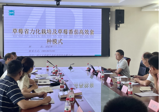 首先张雪艳副经理介绍了公司整体情况,西安市农业农村局李军见研究员介绍陕西草莓产业情况,河南省农业科公司张俊涛副研究员介绍河南草莓产业状况,黄河流域水质和土壤对草莓栽培的影响分析,南京美莓源生态农业科技有限公司刘东华总经理做了题为“草莓省力化栽培及草莓番茄高效套种模式”的报告,宁夏思博瑞生态农业科技有限公司刘杰总经理介绍宁夏草莓产业发展及企业发展情况。