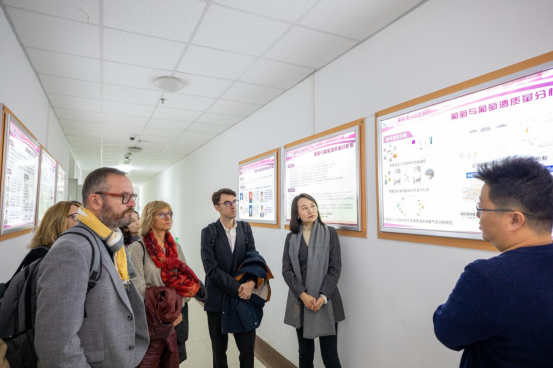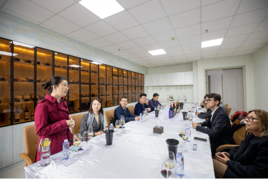 在葡萄与葡萄酒工程系系主任金刚、实验室主任高宇的带领下,参观了教育部葡萄与葡萄酒工程中心,葡萄栽培与生理实验室,葡萄抗逆分子育种实验室,葡萄酒微生物实验室、葡萄酒酿造实验室,并针对葡萄酒酿造工艺优化等方面技术开展了探讨交流。李茹一老师在品酒室介绍了公司师生研发的塞爵系列葡萄酒产品,法方对产品品质给予了高度评价。
