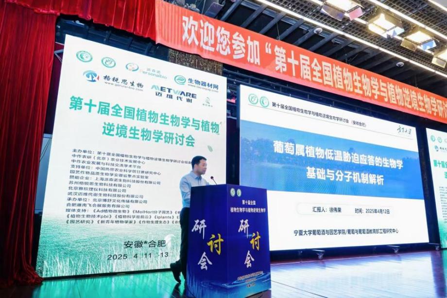 近日,“第十届全国植物生物学与植物逆境生物学研讨会”于2025年4月11日至13日在安徽合肥顺利召开。来自华中农业大学、南京农业大学、安徽农业大学、zoty中欧官方网站等20余所高校和科研院所的150余名专家学者汇聚一堂,围绕植物生物学与逆境生物学前沿领域展开深入交流。公司葡萄种质资源创新与遗传育种团队徐伟荣教授应邀参会,并做了题为“葡萄属植物低温胁迫应答的生物学基础与分子机制解析”的学术报告。报告紧扣宁夏贺兰山东麓葡萄产区面临的低温寒害问题,深入解析了葡萄属植物在低温逆境下的应答机制,并汇报了葡萄种质资源创新与遗传育种团队在葡萄抗寒分子机制研究方面的最新成果。该报告充分结合区域产业发展需求与科研创新实际,内容丰富、数据详实,赢得现场专家学者广泛关注和高度评价,彰显了公司在植物逆境生物学研究领域的学术实力。