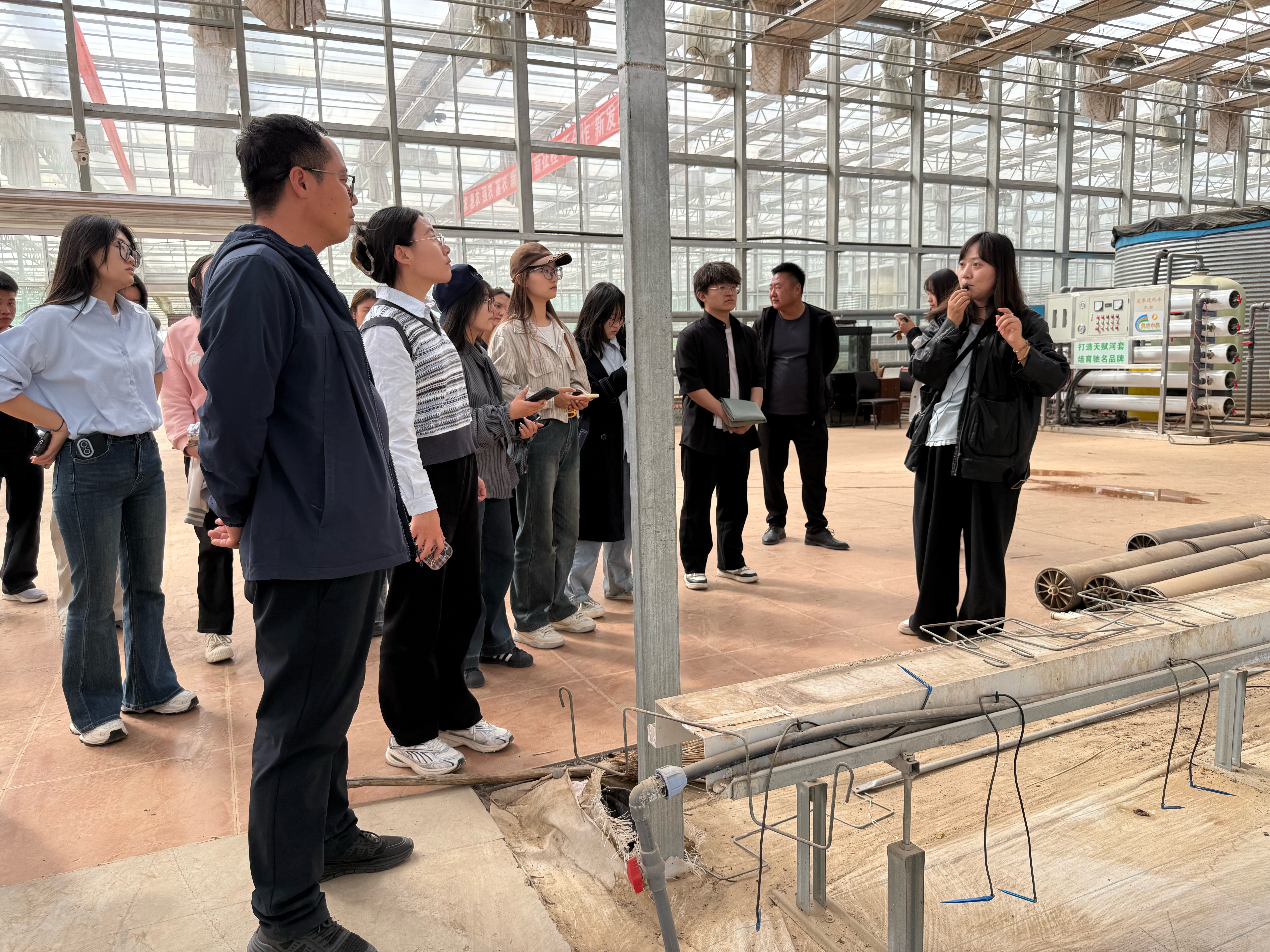 随后,师生们来到鲜农农业牧业科技有限公司红石榴农业合作园区。在这里,员工们系统学习了西北特色阳光温室的建造知识,实地探究现代农业栽培模式。通过现场观摩与学习,同学们对现代园艺不同栽培方法及理论有了更为深刻的理解。在与公司高经理的沟通交流中,同学们深入了解了新农科的发展规律以及产业当下急需的技术要点。高经理代表鲜农农业牧业科技有限公司,诚挚欢迎zoty中欧官方网站学子投身园艺产业发展,并对同学们寄予厚望,希望大家能够树立兴农爱农的深厚情怀。