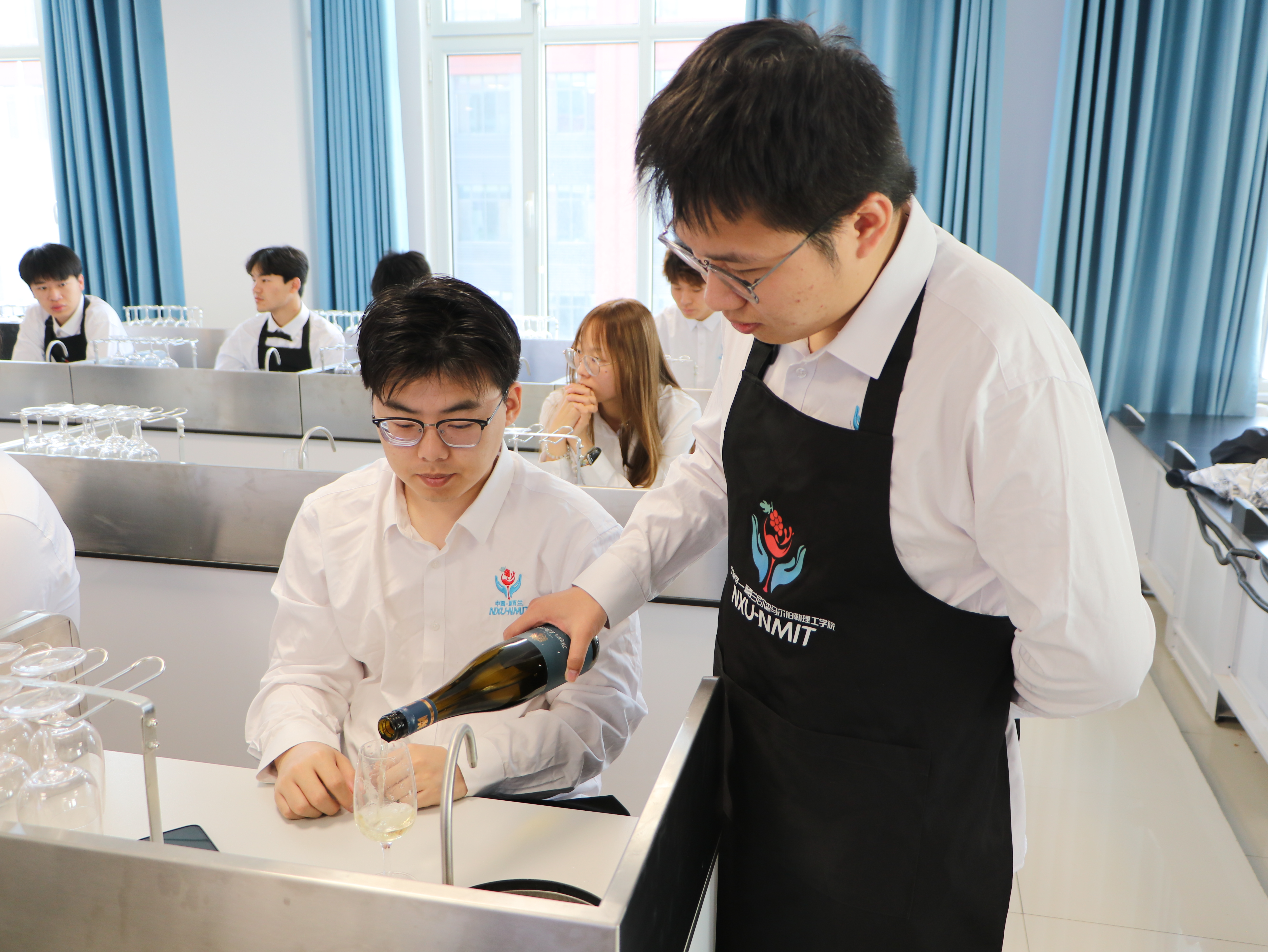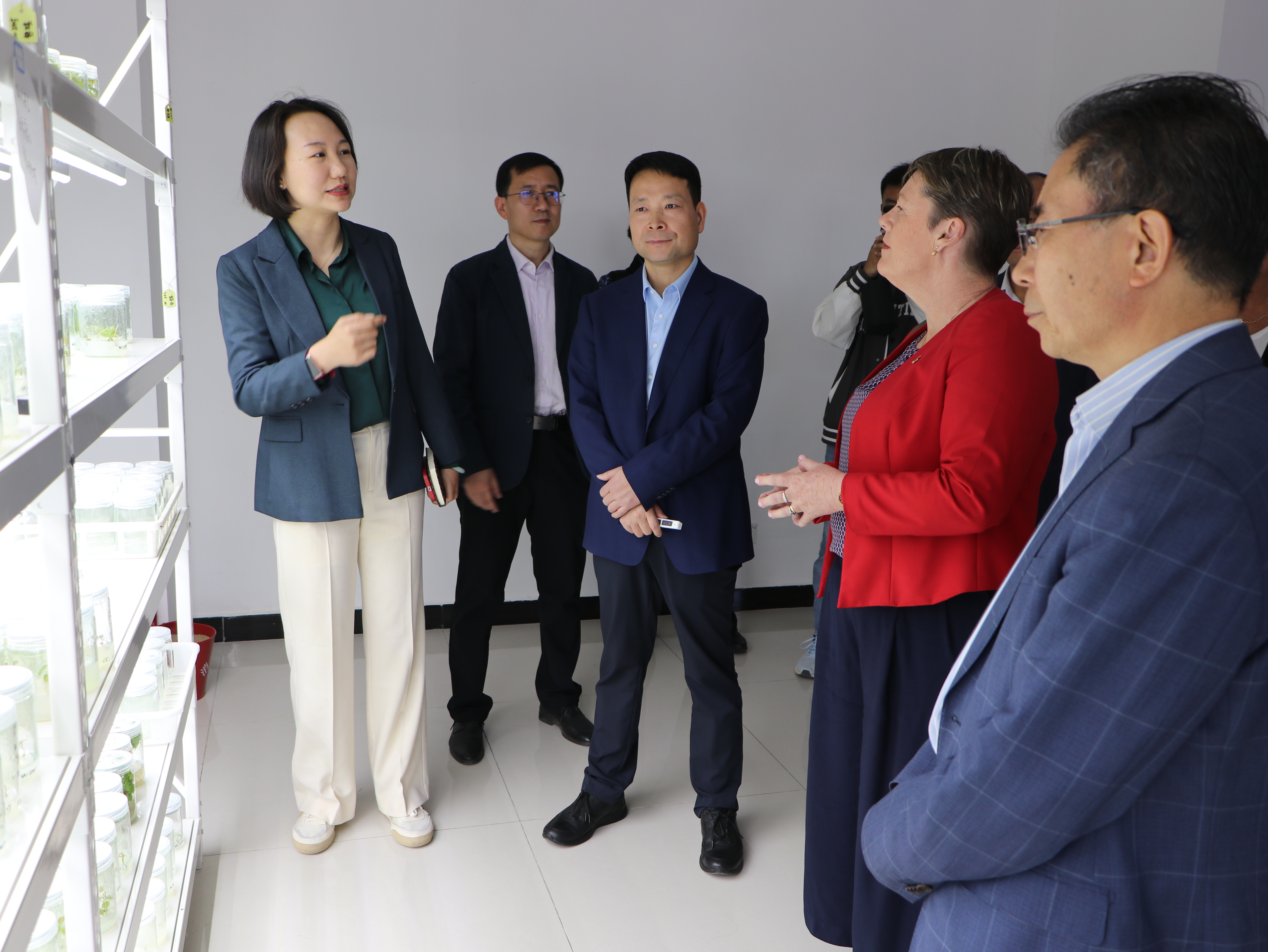 纳迪恩·泰勒一行在朔方校区参观了zoty中欧官方网站国家葡萄产业技术体系水分生理及节水栽培实验室,详细了解了宁夏葡萄酒发展历史,听取了zoty中欧相关负责人对公司历史沿革、人才培养、团队队伍建设及科研成果等方面情况的介绍,并参加了葡萄与葡萄酒工程专业员工品鉴研讨活动,与员工进行了交流互动。