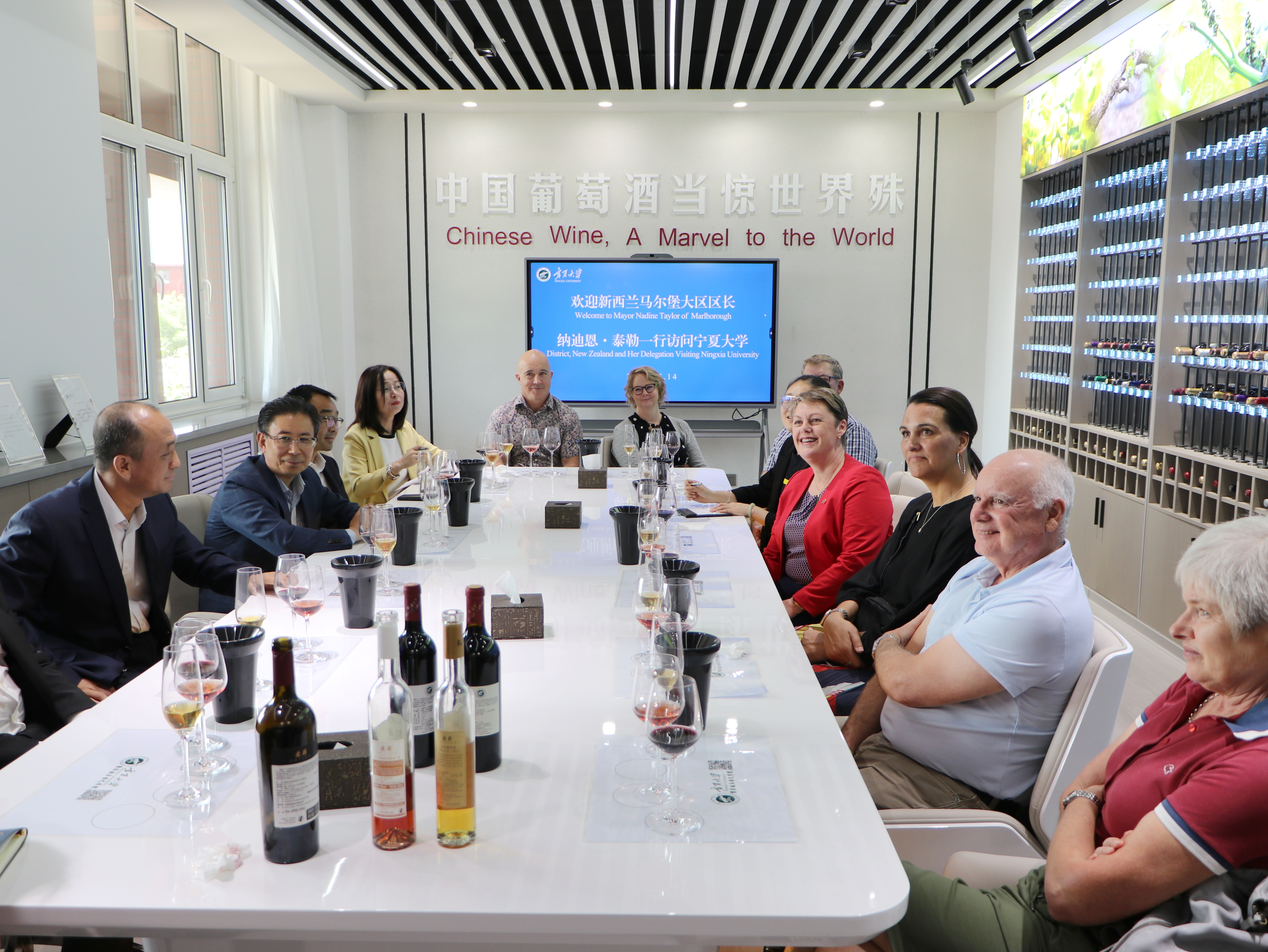 5月14日,新西兰马尔堡大区区长纳迪恩·泰勒一行来校访问交流,宁夏回族自治区外事办公室副主任樊华峰,公司党委书记李星,公司党委常委、副董事长谢海涛陪同访问。