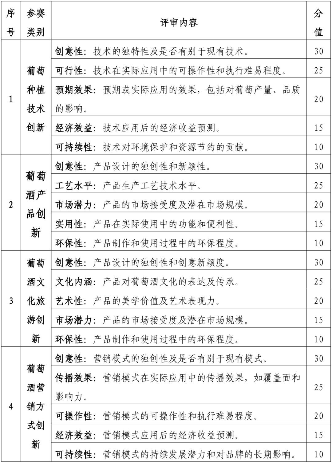 (一)鼓励行业人士和在校师生积极参与葡萄酒产业创意活动,提升专业技能和创造力。以赛促教,以赛促创,探索新的业务模式或产品概念,打破传统思维,促进创新思维的形成,推动葡萄酒产业创新。