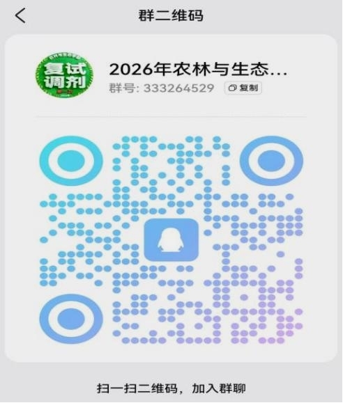 请接到调剂复试通知,确认参加复试的考生尽快加入“2026年农林与生态学部调剂复试QQ群”(群号:333264529,群二维码见下图),以便接收相关通知。进群后,请更改昵称为“姓名+报考公司+报考专业(方向)+联系电话”。zoty中欧(润泽书院)拟定于2026年4月8日接到调剂复试通知后至4月9日12:00前进行线上资格审核,请考生将资格审核材料以“姓名+公司+专业+联系电话”命名,连同缴费截图一起压缩发送至指定邮箱2378659262@qq.com;
